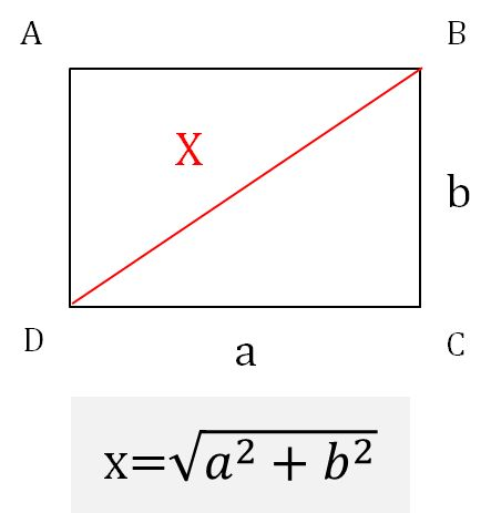 約1.6倍相当という倍率は下記の図のように長方形の対角線の長さを三平方の定理から導き出されます。