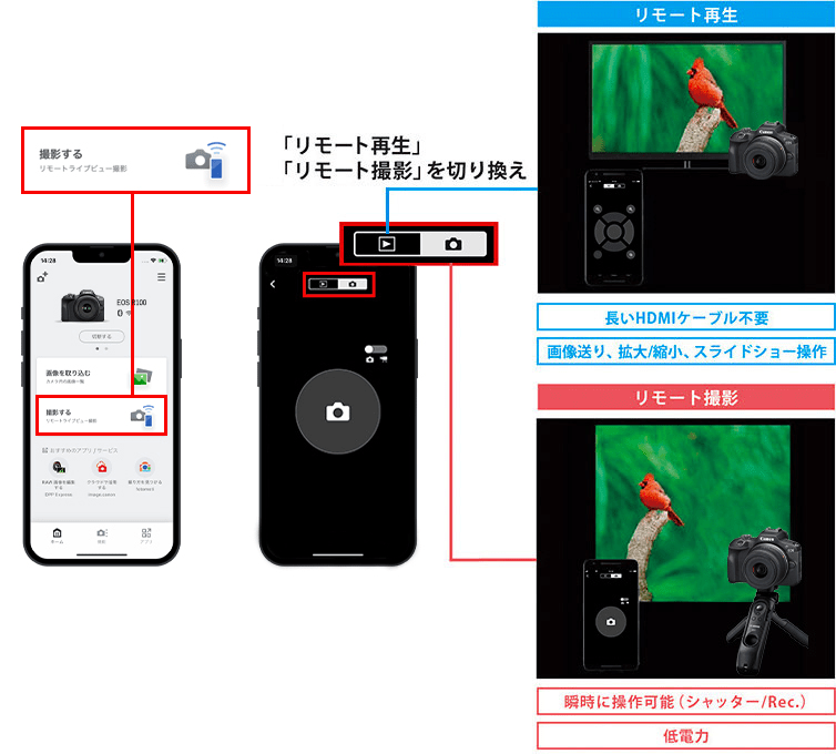 また、スマホをリモコン代わりに使ってカメラの操作ができます。